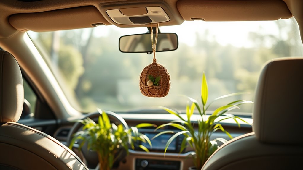These products reduce your exposure to synthetic chemicals and VOCs, promoting better air quality inside your vehicle. By opting for natural ingredients like essential oils, plant extracts, and activated bamboo charcoal, you'll enjoy refreshing scents without harmful substances. Additionally, many eco-friendly air fresheners contain antioxidants that promote overall health, which can contribute to your well-being while driving. Furthermore, essential oils provide natural antibacterial properties that can help purify the air in your car. For instance, using essential oils for toothache relief can also create a soothing atmosphere during long drives.